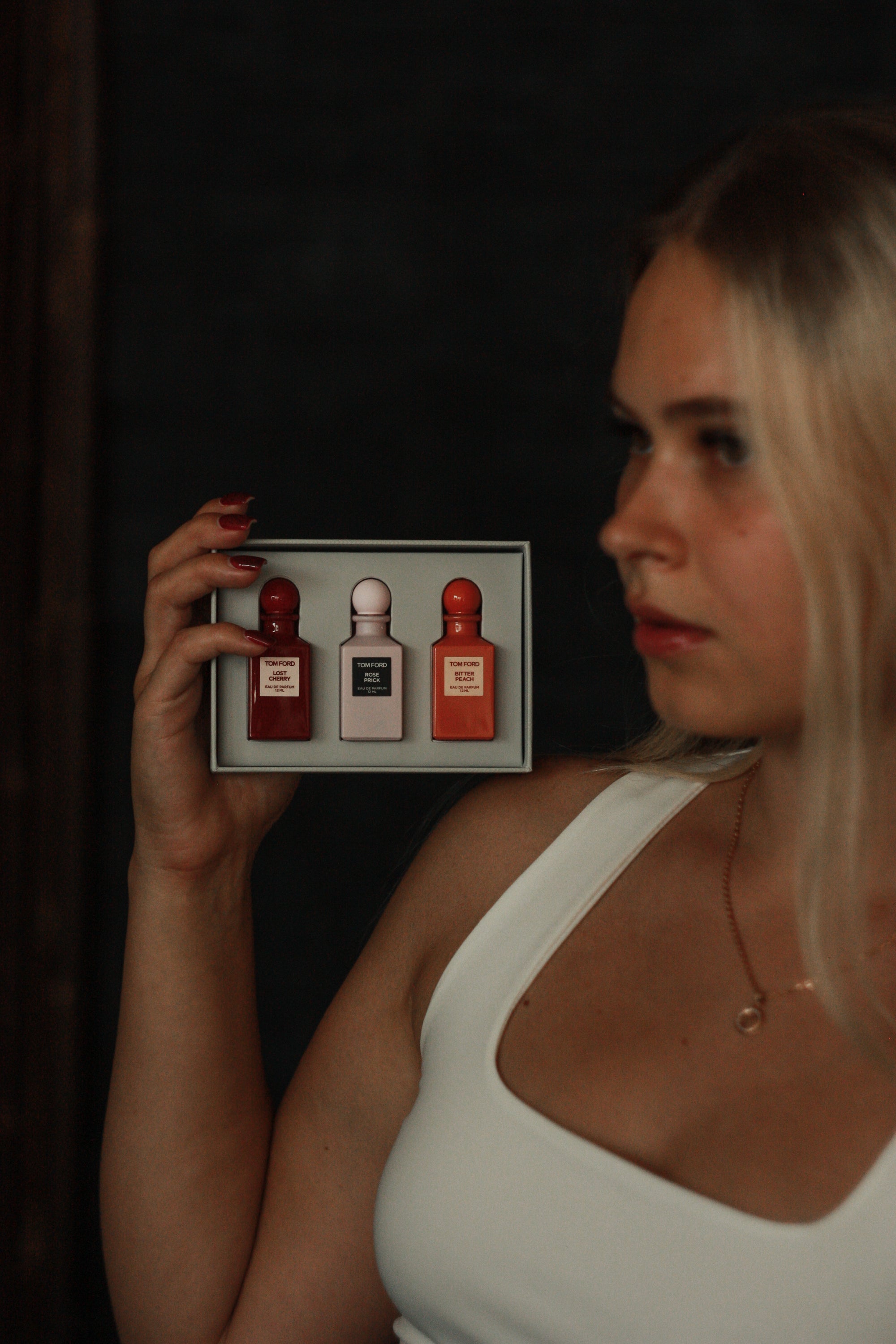 While this set’s composition may vary, Tom Ford icons like Tom Ford Lost Cherry, Tom Ford Rose Prick, and Tom Ford Bitter Peach are often the most sought-after choices — beloved for their unique character and viral popularity. Lost Cherry seduces with cherry liqueur and almond; Rose Prick is a spiced bouquet of rose and Sichuan pepper; Bitter Peach tempts with sweet, ripe peach soaked in rum and patchouli. These names have become modern legends in the niche perfume world.